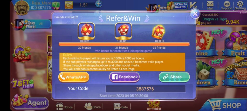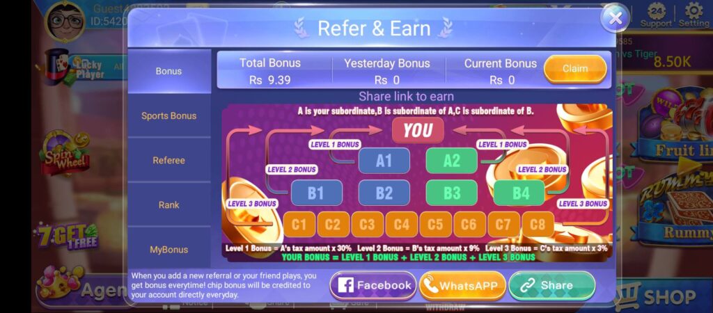 3 Patti Room includes a “Refer and Earn” system where you can invite your friends and family to join. When someone registers and deposits money using your referral link, you earn a commission. For example, if one of your referrals deposits PKR 3000, you can instantly get PKR 800 or more as a bonus. The more active players you refer, the higher your monthly income.